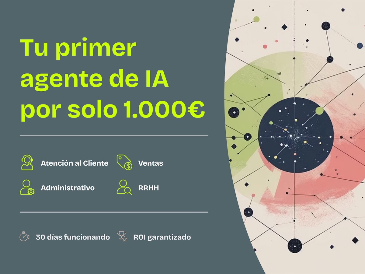 Lanzamos 10 ofertas con 30% de descuento para implementar tu primer agente de IA por 1.000€. Un agente de IA no es un chatbot ni un asistente genérico. Es software
