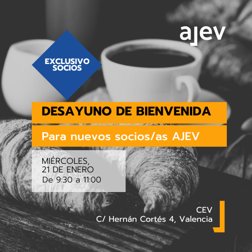 Será el próximo miércoles 21 de enero, de 9:30 a 11:00 en la sede de AJEV (CEV – C/ Hernán Cortés 4, Valencia)